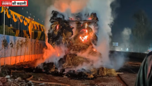बागपत: हाईवे पर आग की लपटों में घिरा ट्रॉला, दमकल की गाड़ियों ने बुझाई आग
