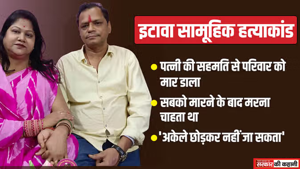 इटावा में परिवार की हत्या करने के बाद खुदकुशी करने जा रहे कारोबारी को बचा लिया गया। कारोबारी ने पूछताछ में कई चौंकाने वाले खुलासे किए हैं। उसने यह भी बताया कि इस हत्याकांड को अंजाम क्यों दिया गया? सराफा कारोबारी ने सोमवार सुबह लगभग पांच बजे अपनी पत्नी, तीन बच्चों को नींद की गोलियां खिलाकर बेसुध किया। फिर एक-एक कर रस्सी से गला दबाकर चारों की हत्या कर दी। वह खुद भी ट्रेन से कटकर जान देने जा रहा था, लेकिन पुलिस ने उसे बचा लिया। पूछताछ में आरोपी सराफा कारोबारी ने बताया कि पत्नी की सहमति पर ही उसने चारों की हत्या की। पुलिस ने कारोबारी के साले की तहरीर पर आरोपी के खिलाफ हत्या की रिपोर्ट दर्ज करके उसे जेल भेज दिया है।