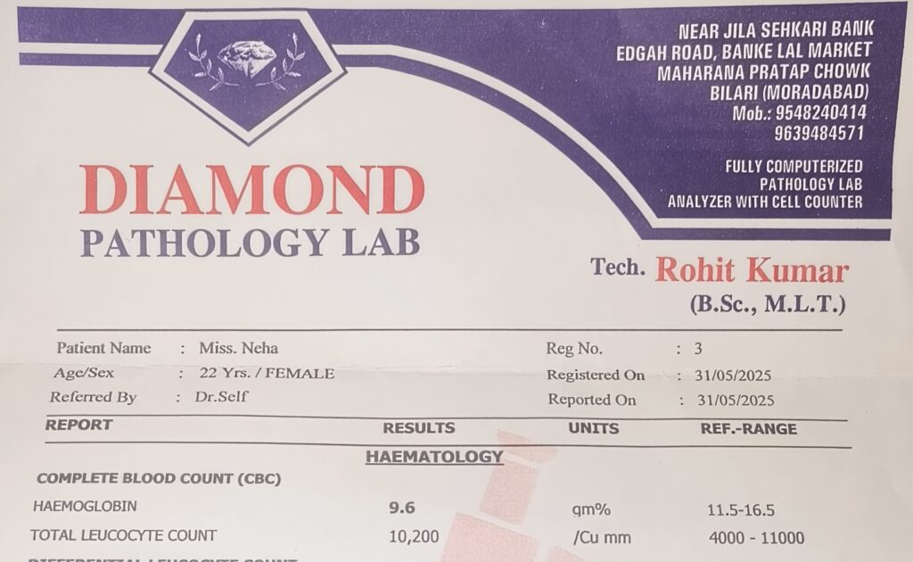 जिला सहकारी बैंक के पास ईदगाह रोड़ पर बनके लाल मार्केट में चल रहा संचालक रोहित कुमार का फर्जीवाड़ा मुरादाबाद। बिलारी सामुदायिक स्वास्थ्य केंद्र के चिकित्सक अधीक्षक के संरक्षण में एक ओर पैथोलॉजी लैब का फर्जीवाड़ा उजागर हुआ है जो डायमंड पैथोलॉजी लैब के नाम से ईदगाह रोड़ स्थित, सहकारी बैंक के पास बनके लाल मार्केट में संचालित है। संचालक का कहना है कि सीएमओ कार्यालय में मेरे नाम से पंजीकरण है। जबकि उसने डीएससी, एमएलटी का डिप्लोमा किया है। जिले में अपंजीकृत पैथोलॉजी लैबों का मकड़जाल धीरे धीरे बढ़ता ही जा रहा है। बिलारी की अगर हम बात करें