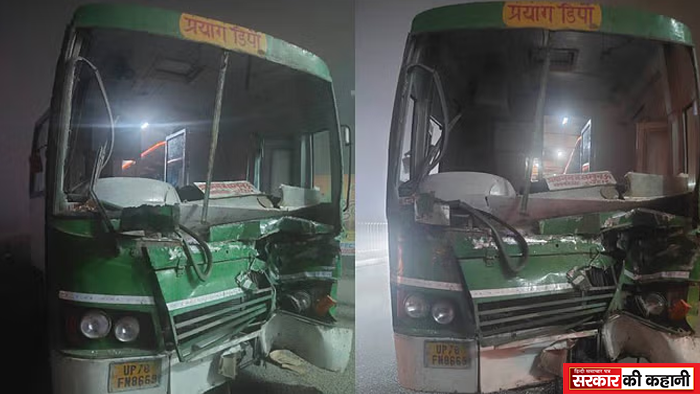 हादसे में बस का अगला हिस्सा क्षतिग्रस्त, लखनऊ के लिए चार घायलों को रेफर किया गया यूपी के रायबरेली में बछरावां कोतवाली
